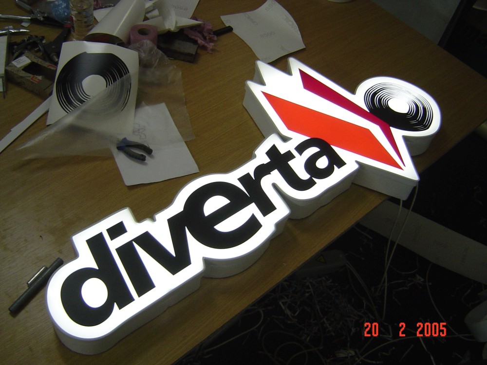 Litere volumetrice DIVERTA – logo volumetric cu fata din stiplex inscriptionat cu autocolant si laterala din Al vopsita electrostatic. Iluminarea este realizata cu tuburi spectrale HUAWEI – litere volumetrice neluminoase din mdf vopsit si inscriptionat cu autocolant – Bucuresti DEBENHAMS – litere volumetrice cu fata si laterale din stiplex. Pe fata literei este aplicat un al doilea strat de stiplex negru. Iluminarea este ealizata cu tuburi spectrale EDEN SHOES – litere din tabla de Al vopsita electrostatic. Iluminarea este de tip halou , cu tuburi spectrale – Liberty Mall – Bucuresti BRISE – litere cu fata si laterale din stiplex. Iluminare cu tub spectral – Liberty Mall (Bucuresti) DIVERTA – logo volumetric cu fata din stiplex inscriptionat cu autocolant si laterala din Al vopsita electrostatic. Iluminarea este realizata cu tuburi spectrale FREEZONE – litere volumetrice din tabla de Al vopsite electrostatic si illuminate cu tub spectral tip halou – Buzau JACUZZI – litere volumetrice din Al vopsite electrostatic, inscriptionata cu autocolant, contur cu fata si lateralele din stiplex inscriptionat cu autocolant. Iluminare cu tub spectral JENIFFER – litere din stiplex transparent de 20mm, decupat pe router si inscriptionat cu autocolant. Nu sunt luminate si sunt aplicate pe vitrina – Baneasa Shopping Center Litere Volumetrice IPSO Litere Volumetrice Baneasa Airport Tower Litere Volumetrice Folli Follie Ai nevoie de mai multe informatii? 0770.788.275